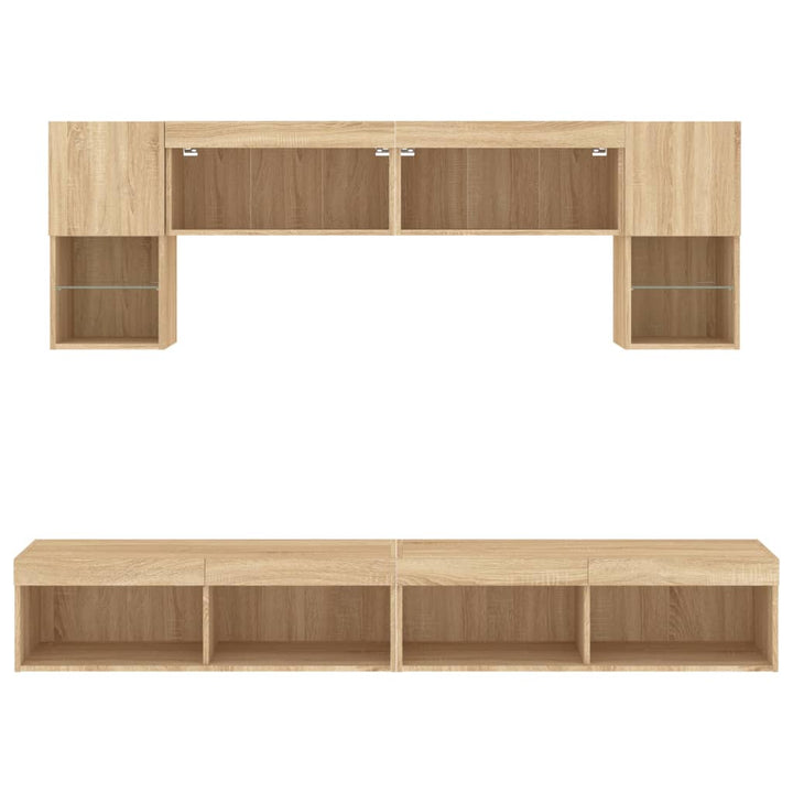 6-tlg. Wohnwand mit LED-Beleuchtung Sonoma-Eiche Holzwerkstoff
