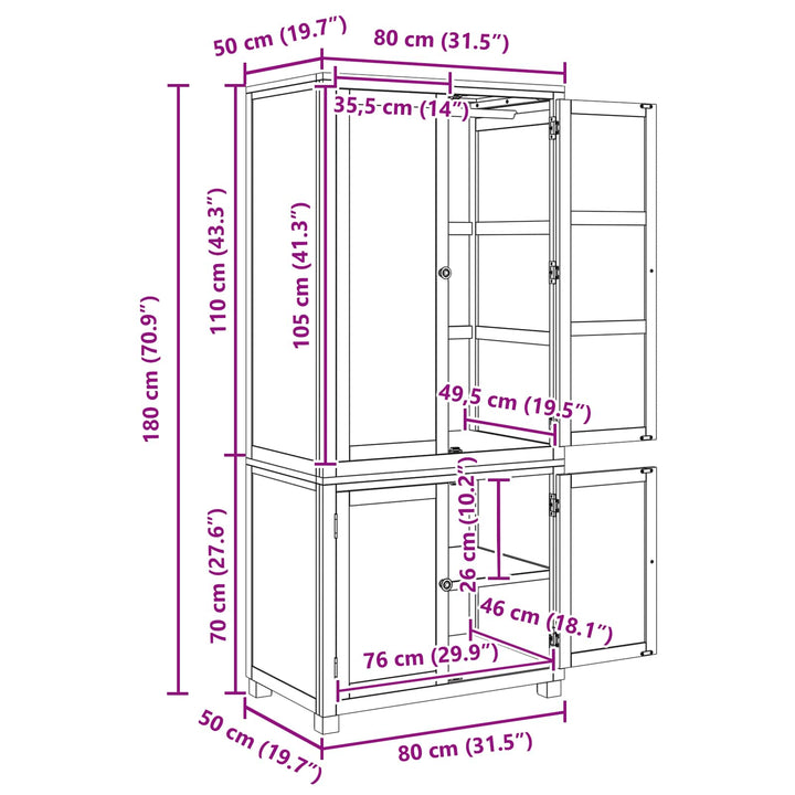 - Gesamtabmessungen: 80 x 50 x 180 cm (L x B x H)