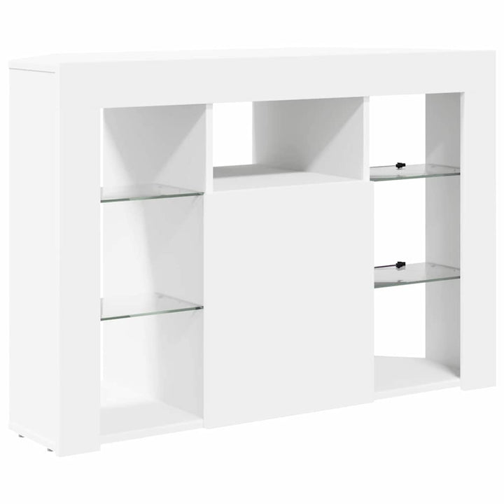 Dieser moderne Eck-LED-TV-Schrank bietet eine schicke Lösung für jedes Wohnzimmer. Er wurde entwickelt, um deine Unterhaltungselemente stilvoll unterzubringen und zu organisieren. Das zeitgenössische Design mit klaren Linien und minimaler Dekoration fügt sich nahtlos in jede moderne Wohnkultur ein. Besonders praktisch für kleine Räume, wo jede Ecke optimal genutzt werden muss. Die matte Oberfläche verleiht einen dezenten Eleganz-Hauch und sorgt für ein gutes Aussehen, das in dein Interieur passt. Zudem sorgt das Holzwerkstoff für Langlebigkeit, sodass du dir sicher sein kannst, dass dieser Schrank auch über die Jahre hinweg stylish bleibt. Konstruktion aus Holzwerkstoff: Hergestellt aus widerstandsfähigem Holzwerkstoff, garantiert dieser TV-Schrank eine lange Haltbarkeit und Stabilität. Das Material ist kratzfest, sodass er auch bei täglichem Gebrauch gut aussieht. Der Fokus liegt auf Widerstandsfähigkeit, wodurch dieser Schrank dein TV-Setup unterstützt und sich gut in sein Umfeld fügt. Benutzerfreundliche USB-Stromversorgung: Der Schrank hat eine USB-Stromquelle, die eine praktische Ladestation für elektronische Geräte bietet. So kannst du deine Geräte jederzeit schnell aufladen. Durch die Integration moderner Technik in sein Design ist der Schrank sowohl nützlich als auch zukunftssicher. Effizienter Stauraum: Der Schrank bietet viel Platz, um dein Wohnzimmer ordentlich zu halten, mit Fächern, die all deine digitalen Zubehörteile und Deko ordentlich unterbringen können. Der gut durchdachte Stauraum erleichtert das Aufräumen, egal ob es sich um Spielekonsolen, Fernbedienungen oder DVDs handelt. Eleganz in Wandmontage: Mit der wandmontierten Funktion bietet dieser Schrank eine clevere Raumsparlösung, die für einen modernen Look sorgt und den Fluss im Wohnraum verbessert. Er schafft mehr Bodenfläche, hat aber trotzdem Platz für deine Medien. Einfache Pflege: Den Schrank in Schuss zu halten ist ein Kinderspiel: Einfach mit einem feuchten Tuch abwischen, um ihn sauber zu halten. Stabile Möbel sollten zur Sicherheit an der Wand befestigt werden, damit du ein zusätzliches Maß an Sicherheit in deinem Wohnraum hast.