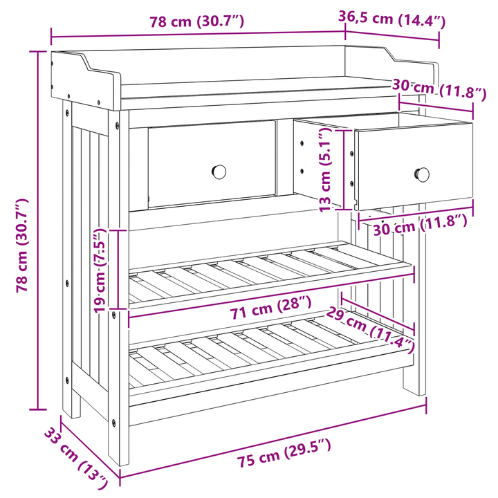 Garten-Schrank Braun 78 x 36.5 x 78cm Massivholz Akazie