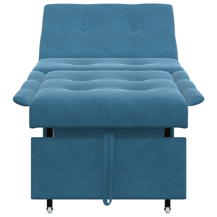 Dieses praktische 3-in-1 Schlafsofa aus coolem blauen Samt kombiniert Stil und Funktionalität. Es ist perfekt zum Sitzen oder Schlafen. Ob für Gäste oder einfach zum Chillen, dieses anpassungsfähige Möbelstück passt klasse zu deinem Lebensstil und bietet Komfort ohne viel Aufwand. Verstellbar: Wähle aus drei Liegepositionen für Entspannung nach einem langen Tag oder wenn Freunde zu Besuch sind. Ausziehbares Design: Vom Sofa zu einem Bett zu wechseln ist mit dem einfachen Ausziehmechanismus ganz leicht. Kompakte Größe: Perfekt für kleine Wohnungen oder enge Räume und eine tolle Wahl für das Stadtleben. Weiche Samtoberfläche: Die blaue Samtpolsterung sieht nicht nur gut aus, sondern ist auch bequem und bringt einen Hauch von Luxus in dein Zuhause. Einfache Pflege: Dieses Schlafsofa ist schnell zu reinigen, damit du sein gutes Aussehen mit wenig Aufwand halten kannst – ideal für ein aktives Leben.