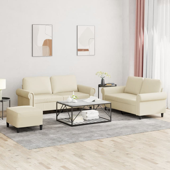 vidaXL 2-tlg. Sofagarnitur mit Kissen Creme Kunstleder