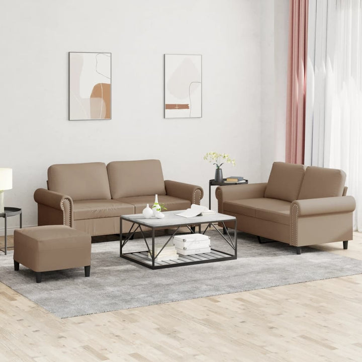 Diese Sofagarnitur bietet einen ausgezeichneten Platz zum Plaudern, Lesen, Fernsehen oder einfach nur zum Entspannen. Sie wird ein echter Blickfang in deinem Zuhause sein. Langlebiges Kunstleder: Kunstleder ist ein äußerst langlebiges Material. Es ist schmutzabweisend und lässt sich mit einem feuchten Tuch einfach reinigen. Durch die glatte Oberfläche weist es die Schönheit von Echtleder und einen luxuriösen Look auf.Robustes und stabiles Gestell: Das Gestell aus Sperrholz und Metall verleiht der Sofagarnitur Robustheit und Stabilität.Bequemes Sitzerlebnis: Mit dick gepolsterten Sitzflächen, Armlehnen und Rückenkissen versehen, ist das Sofa sehr bequem.