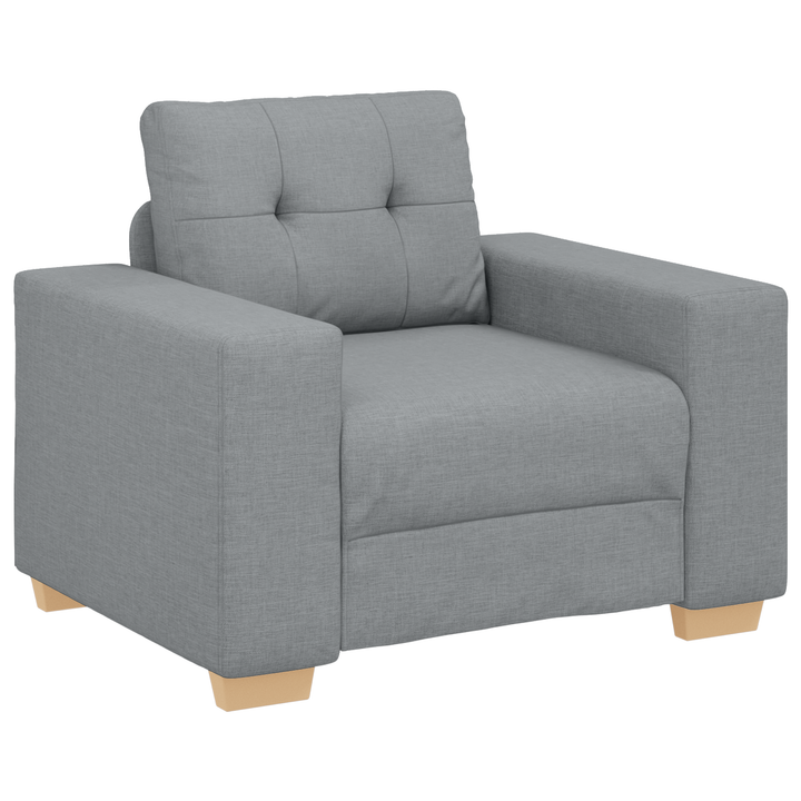 Dieses 3-teilige Sofa Set kombiniert Stil und Komfort perfekt und ist die ideale Ergänzung für jeden modernen Wohnraum. Der hellgraue Stoff vermittelt eine warme, einladende Atmosphäre und passt perfekt zu verschiedenen Einrichtungsstilen. Es wertet sowohl moderne als auch traditionelle Umgebungen auf. Super Bequem: Dieses Sofa Set hat dicke Schaumstoffsitze und kuschelige Kissen, die dir beim Entspannen, Lesen oder Fernsehen großartigen Halt bieten. Es ist dafür gemacht, dich in gemütlichen Komfort zu wickeln – perfekt, um nach einem langen Tag abzuschalten. Starke Bauweise: Hergestellt aus Sperrholz und Metall, ist dieses Sofa Set robust. Du kannst super entspannt chillen; es ist stark genug für den täglichen Gebrauch und sieht dabei gut aus. Vielseitig Einsetzbar: Dieses moderne Sofa fühlt sich an jedem Ort wohl – ob im Wohnzimmer, Arbeitszimmer oder in gemütlichen Leseecken. Das flexible Design ermöglicht eine tolle Integration in große und kleine Räume. Egal, ob du eine Zusammenkunft hast oder einfach nur Ruhe genießen willst, dieses Set passt sich deinem Bedarf an. Stylisches Aussehen: Die Kombination aus Stoff und Holz verleiht diesem Sofa eine elegante Ausstrahlung, die auffällt. Die verstellbaren Elemente und die natürliche Oberfläche sorgen dafür, dass es in jedem Setting großartig aussieht. Mach deine Wohnung mit diesem coolen Sofa Set noch schöner. Einfache Pflege: Die Reinigung ist einfach, sodass du schnell bei kleinen Flecken reagieren kannst. Diese Funktionalität hilft, dein Sofa über Jahre hinweg schön zu halten, was es zu einem tollen Teil deines Zuhauses macht.