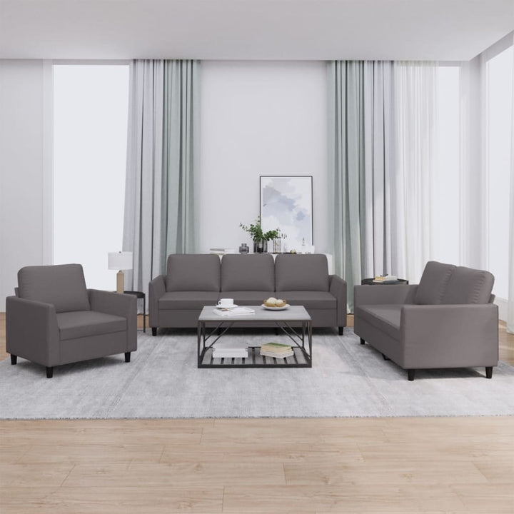 vidaXL 4-tlg. Sofagarnitur mit Kissen Grau Kunstleder