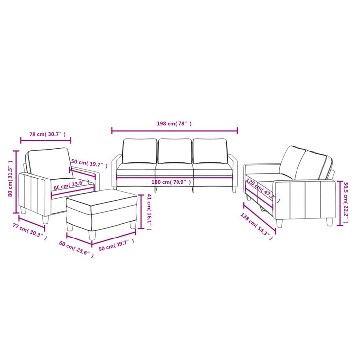 Diese Sofagarnitur bietet einen ausgezeichneten Platz zum Plaudern, Lesen, Fernsehen oder einfach nur zum Entspannen. Sie wird ein echter Blickfang in deinem Zuhause sein. Strapazierfähiger Stoff: Der Stoff zeichnet sich durch einen schlichten und sauberen Look aus und ist gleichzeitig atmungsaktiv und langlebig.Robustes und stabiles Gestell: Das Gestell aus Sperrholz und Metall verleiht der Sofagarnitur Robustheit und Stabilität.Bequemes Sitzerlebnis: Mit dick gepolsterten Sitzflächen, Armlehnen und Rückenkissen versehen, ist das Sofa sehr bequem.Vielseitiger Fußhocker: Der Hocker eignet sich zum Ausruhen der Füße beim Liegen auf dem Sofa, kann aber auch als zusätzliche Sitzgelegenheit in deinem Zimmer dienen. Darüber hinaus eignet er sich durch sein schlichtes Design und seine kompakte Größe für fast alle Wohnräume.