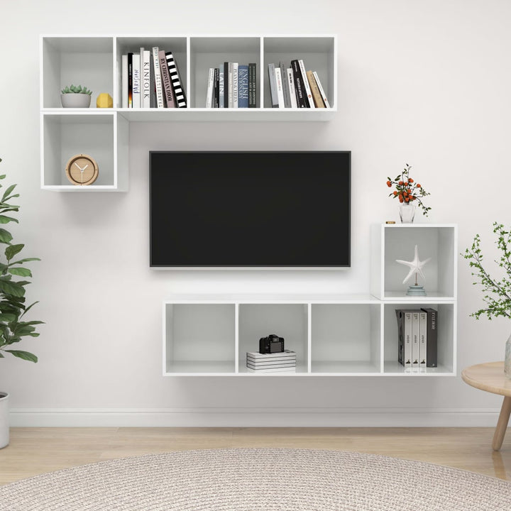 vidaXL 4-tlg. TV-Schrank-Set Weiß Holzwerkstoff