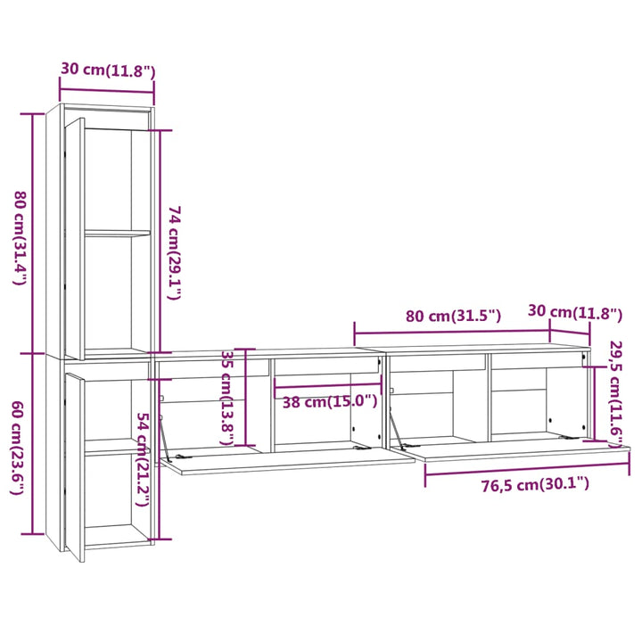 vidaXL TV-Schränke 4 Stk. Massivholz Kiefer