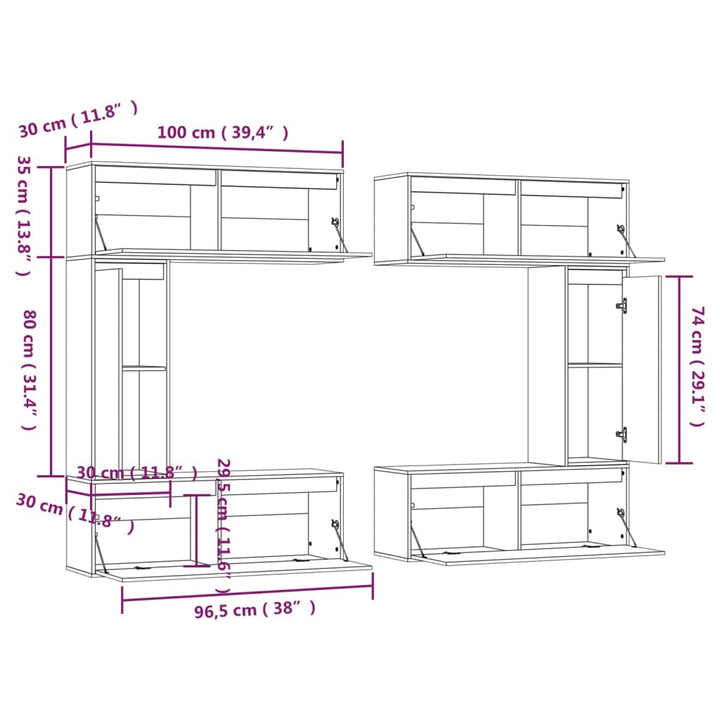 - 4 x TV-Schrank: 100 x 30 x 35 cm (B x T x H)
