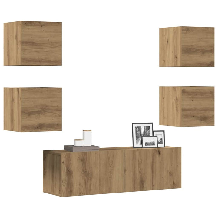 vidaXL TV-Wandschrank-Set Räuchereiche Holzwerkstoff