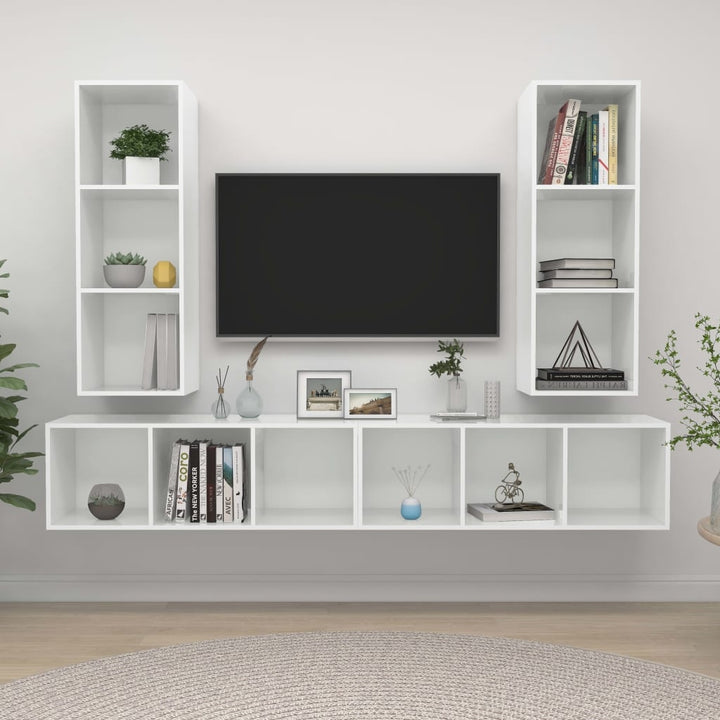 vidaXL TV-Wandschränke 4 Stk. Hochglanz-Grau Holzwerkstoff
