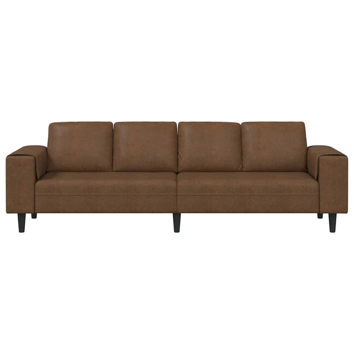 Dieses Kunstwildleder-Sofa ist ein echter Blickfang im zeitgenössischen Design. Mit dem glatten Kunstleder-Finish und der eleganten, minimalistischen Form ist es die ideale Wahl für Wohnzimmer, die etwas Eleganz brauchen und trotzdem gemütlich bleiben wollen. Die skulpturierten Linien und subtilen Texturen passen perfekt in verschiedene Innenräume und verleihen modernen Wohnungen eine schicke Atmosphäre. Es ist nicht nur stylisch, sondern auch super praktisch – der perfekte Ort für Familientreffen oder zum Entspannen alleine. Glattes Kunstleder-Finish Das Sofa hat einen Kunstlederbezug, der nicht nur schick, sondern auch pflegeleicht ist – einfach mit einem trockenen Tuch drüberwischen. Es sieht luxuriös aus, ohne den Aufwand der echten Lederpflege, sodass es lange gut aussieht. Elegante Kegelbeine Die kegeligen Kunststoffbeine geben dem Sofa einen modernen Look und sorgen für stabilen Halt. Ihre schwarze Farbe passt super zu verschiedenen Einrichtungsstilen und verbessert die Gesamtatmosphäre deines Raums. Außerdem sind sie stark genug für den täglichen Gebrauch. Robuster Holzwerkstoffrahmen Der Rahmen des Sofas ist aus Holzwerkstoff, was für Stabilität und Nachhaltigkeit sorgt. Damit ist es langlebig und kann den täglichen Anforderungen problemlos standhalten. Zudem ist es umweltfreundlich. Funktionale flache Armlehnen Die flachen Armlehnen sorgen für ein aufgeräumtes Aussehen und bieten praktische Ablageflächen für deine Arme, ein Getränk oder ein Buch. Sie halten den minimalistischen Stil und sind super bequem für alle, die ein funktionales Möbelstück suchen. Effiziente Montage Dieses Sofa lässt sich ganz einfach zusammenbauen – du brauchst nur einen Schraubendreher und einen Freund. Die Anleitung ist klar, sodass der Aufbau schnell und unkompliziert geht, ideal für vielbeschäftigte Haushalte.