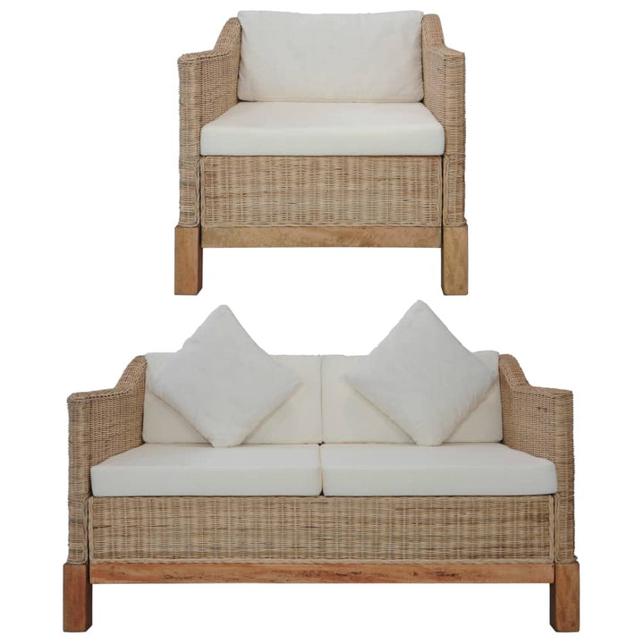 vidaXL 2-Sitzer-Sofa mit Kissen Natürliches Rattan