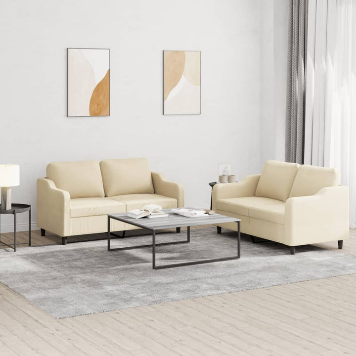 vidaXL 2-tlg. Sofagarnitur mit Kissen Creme Stoff