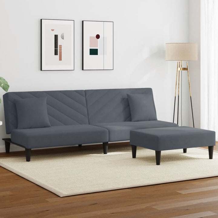 Diese Sofagarnitur bietet einen ausgezeichneten Platz zum Plaudern, Lesen, Fernsehen oder einfach nur zum Entspannen. Sie wird ein echter Blickfang in deinem Zuhause sein. Weicher Samt: Samt ist ein weicher und bequemer Stoff, der sich angenehm auf der Haut anfühlt. 2-in-1-Funktion: Dieses Schlafsofa lässt sich schnell und einfach von einem Sofa in ein Bett und wieder zurück verwandeln. Die zwei separaten Rückenlehnen können teilweise oder ganz nach unten gedrückt werden, um den idealen Platz für ein Nickerchen am Nachmittag zu schaffen oder ein Doppelbett für die Nacht zu haben. Vielseitiger Fußhocker: Der Hocker bietet Platz zum Ausruhen der Füße beim Liegen auf dem Sofa, kann aber auch als zusätzliche Sitzgelegenheit in deinem Zimmer dienen. Darüber hinaus eignet er sich durch sein schlichtes Design und seine kompakte Größe für fast alle Wohnräume. Bequemes Sitzerlebnis: Das Sofa ist durch die dick gepolsterte Sitzfläche und Rückenlehne sehr bequem. Stützbeine: Der Polstersessel wird von stabilen Beinen getragen, die seine Stabilität und Standfestigkeit gewährleisten.