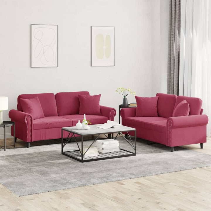 vidaXL 2-tlg. Sofagarnitur mit Kissen Weinrot Samt