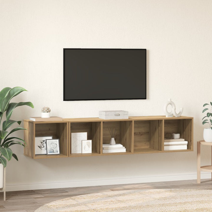 Ausgestattet mit viel Stauraum für die Organisation verschiedener Gegenstände wird dieses hängende TV-Schrank-Set definitiv eine praktische und auffällige Ergänzung in Ihrem Zuhause sein. Die TV-Schränke werden an der Wand befestigt und sind somit eine zeitlose Ergänzung für Ihr Zuhause. Diese TV-Möbel sind ideal zum Ausstellen oder Aufbewahren von Gegenständen, die Sie gut organisiert und griffbereit haben möchten. Außerdem lässt sich das Fernsehschrank-Set einfach mit einem feuchten Tuch reinigen.