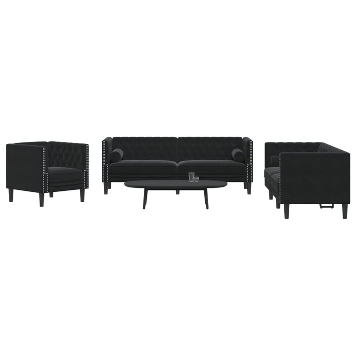 Diese Chesterfield-Sofas bietet den idealen Platz zum Plaudern, Lesen, Fernsehen oder einfach nur zum Entspannen. Die Sofagarnitur wird ein echter Blickfang in deinem Zuhause sein. Weiches und komfortables Material: Der Samtstoff hat eine weiche und sanfte Oberfläche, die sich angenehm auf der Haut anfühlt und höchsten Komfort bietet.Bequemes Sitzerlebnis: Dank der dick gepolsterten Sitzflächen, Armlehnen und Rückenkissen ist das Sofa sehr bequem. Die im Lieferumfang enthaltenen Nackenrollen verschönern nicht nur deine Einrichtung, sondern werden auch zusätzlichen Sitz- und Liegekomfort bieten.Chesterfield-Stil: Mit dem klassischen Rückenlehne und den Armlehnen mit Knopftuft und einer einheitlichen Rücken- und Armhöhe wertet das Sofa jeden Wohnraum auf und bietet sowohl Stil als auch Komfort.Stützbeine: Der Polstersessel wird von stabilen Beinen getragen, die seine Stabilität und Standfestigkeit gewährleisten.