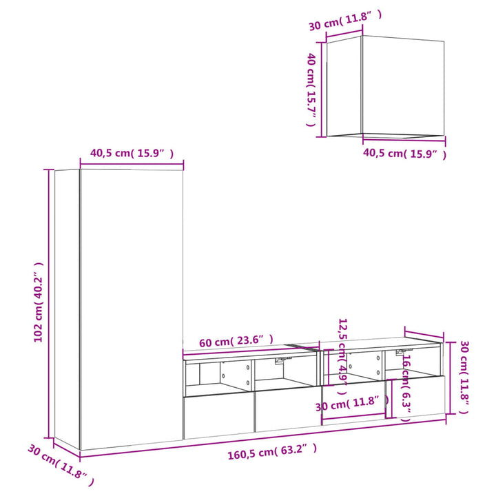 vidaXL 4-tlg. Wohnwand Braun Eichen-Optik Holzwerkstoff