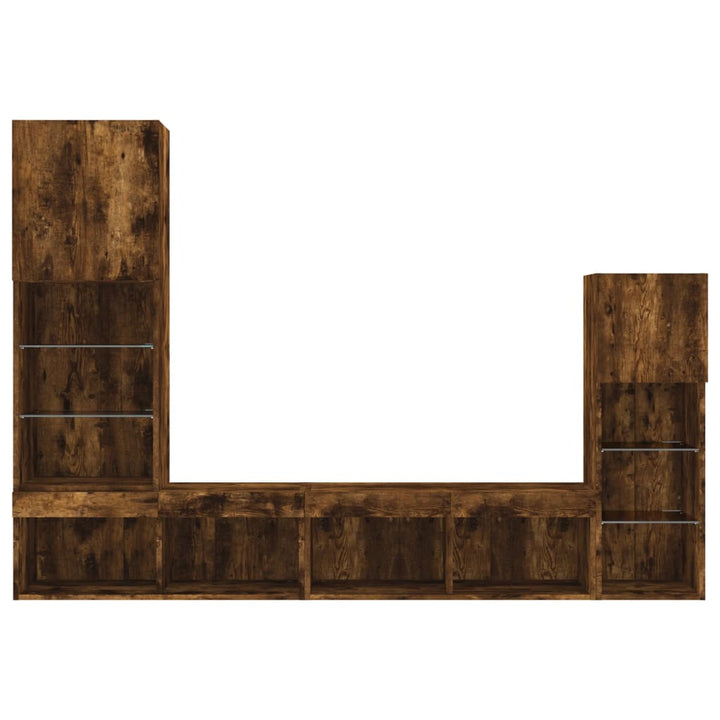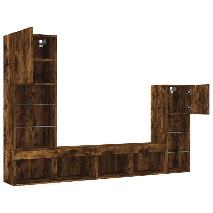 vidaXL 4-tlg. Wohnwand mit LED-Beleuchtung Räuchereiche Holzwerkstoff