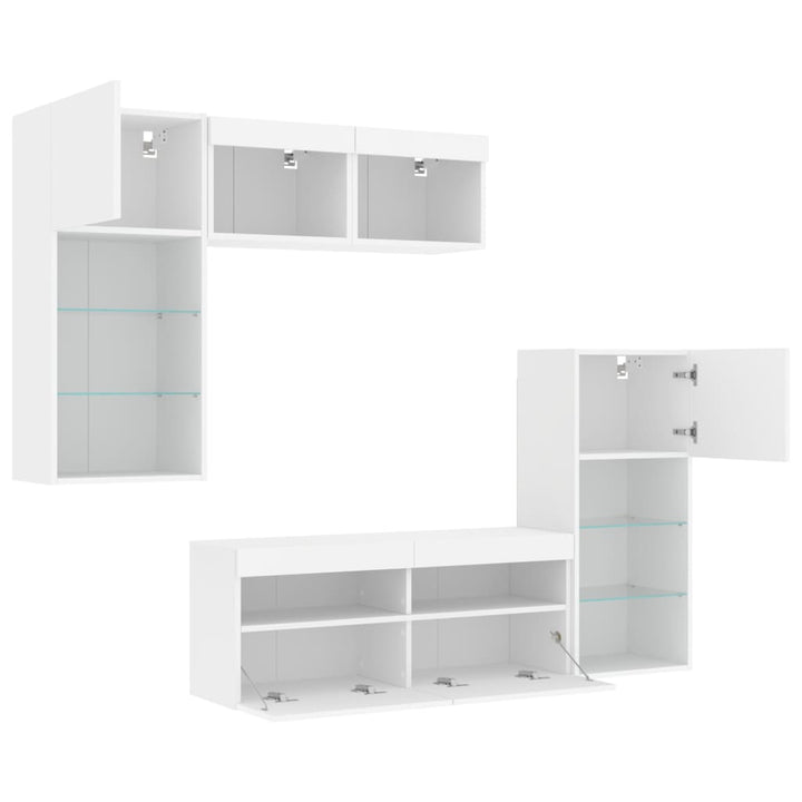 vidaXL 5-tlg. Wohnwand mit LED-Beleuchtung Weiß Holzwerkstoff