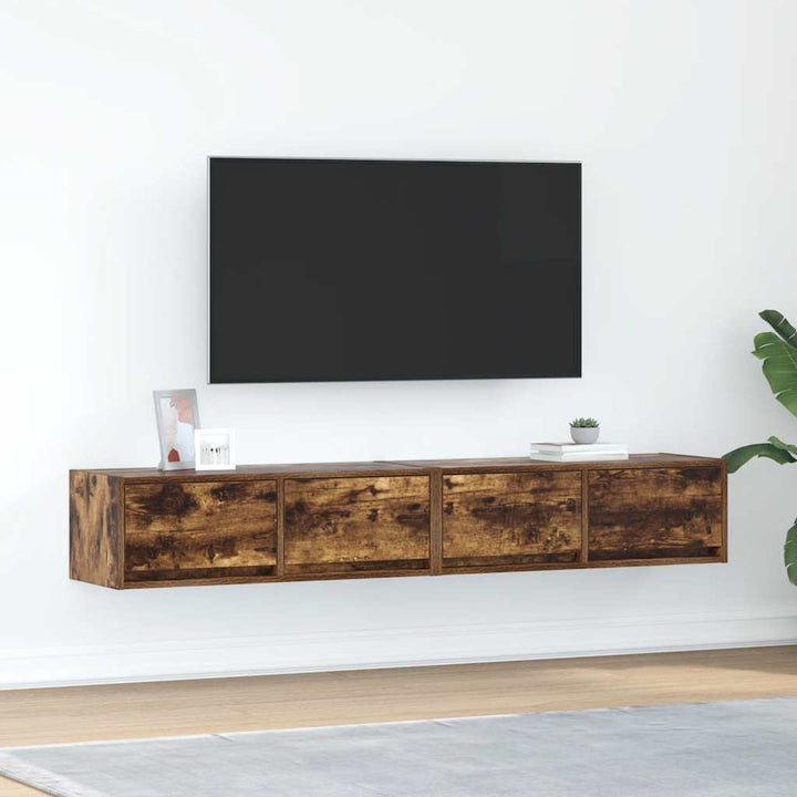 Dieser Rauch-Eiche Wandmontierte TV-Schrank kombiniert praktische Aufbewahrung mit modernem Stil und ist ein tolles Stück für jedes Wohnzimmer oder Schlafzimmer. Sein schlankes Design hat ein schönes bronzefarbenes Finish, das deine Elektronik in den Fokus rückt und dabei alles ordentlich aufbewahrt. Du erhältst ein funktionales Möbelstück, das super aussieht. Das wandmontierte Design maximiert den Bodenplatz und verleiht einen modernen Look, ideal für kleinere Räume. Hergestellt aus robustem Holzwerkstoff, ist dieser Schrank langlebig und sieht gut aus, also hält er dem täglichen Gebrauch bestens stand. Zwei große Schubladen lassen sich unkompliziert herausziehen und bieten genügend Stauraum für dein ganzes Unterhaltungszeug, dabei bleibt alles ordentlich versteckt. Die 100 cm große Oberfläche ist perfekt für deinen Fernseher oder Dekoartikel und schafft einen tollen Blickfang im Raum. Vielseitig genug für jeden Raum, passt er super zu verschiedenen Stilen und Ambiente.