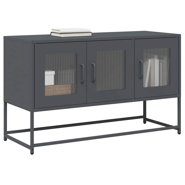 Dieser TV-Schrank ist nicht nur dekorativ, sondern bietet auch praktischen Stauraum und ist damit eine perfekte Ergänzung für dein Zuhause. Stabiles und langlebiges Gestell: Stahl ist stark, stabil und langlebig, was ihn zur idealen Wahl für eine Vielzahl von Anwendungen macht, von der Möbelherstellung bis hin zum Bauwesen.Praktische Griffe: Der TV-Schrank ist mit bequemen Griffen versehen, die das Öffnen und Schließen des Schranks erleichtern und gleichzeitig zu seiner ansprechenden Optik beitragen.Reichlich Stauraum: Der TV-Schrank bietet reichlich Stauraum, um Essgeschirr und andere Haushaltssachen ordentlich und griffbereit aufzubewahren.Metallfüße: Die Metallfüße verleihen ihm eine angenehme Optik und sorgen gleichzeitig für Stabilität.Breiter Anwendungsbereich: Du kannst dieses TV-Sideboard als Badschrank oder Küchenschrank verwenden, oder einfach als eleganten Aufbewahrungsschrank im Schlafzimmer, Badezimmer, Eingangsbereich, Flur und Büro, Esszimmer und anderen Wohnbereichen. Achtung:Um ein Umkippen zu vermeiden, sollte dieses Produkt mit der mitgelieferten Wandhalterung gesichert werden.