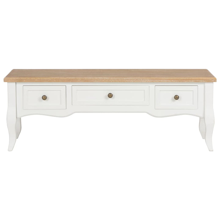 Verleihen Sie Ihrem Wohnzimmer einen Hauch von Eleganz mit unserem klassischen TV-Schrank! Der TV-Schrank im französischen Stil ist mit 3 Schubladen für ausreichend Stauraum ausgestattet. Er ist eine praktische und zugleich dekorative Ergänzung für Ihr Wohn- oder Schlafzimmer. Dieses Stereo-Gehäuse besteht aus MDF und Kiefernholz, die mit einem Anstrich versehen wurden, um dem Gehäuse ein raffiniertes Aussehen zu verleihen und die Reinigung mit einem feuchten Tuch zu vereinfachen. Die geschwungenen Beine und der klassische Knopf tragen zum Vintage-Stil des Plasmaschranks bei. Das Produkt ist leicht zu montieren. Werten Sie Ihr Interieur mit unserem schlichten und doch eleganten TV-Schrank auf!