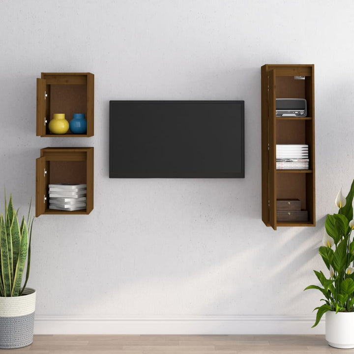 vidaXL TV-Schränke 3 Stk. Honigbraun Massivholz Kiefer