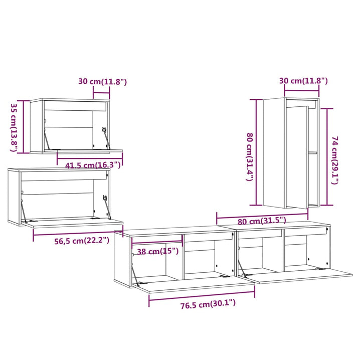 vidaXL TV-Schränke 5 Stk. Weiß Massivholz Kiefer