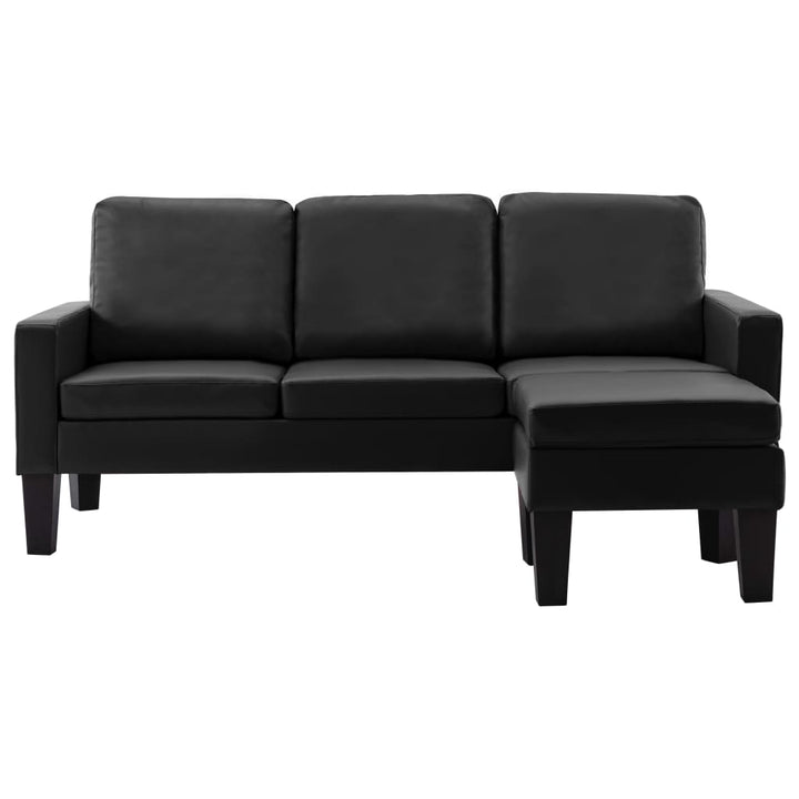 3-Sitzer-Sofa mit Hocker Schwarz Kunstleder