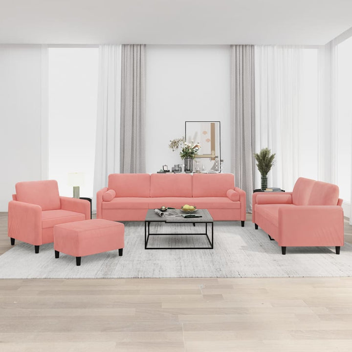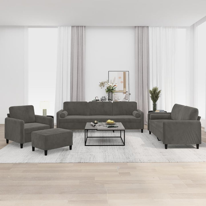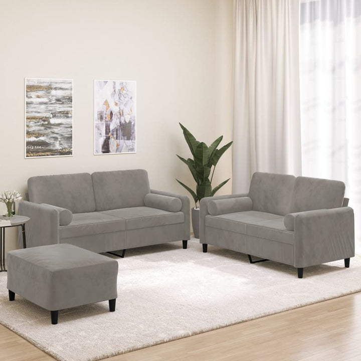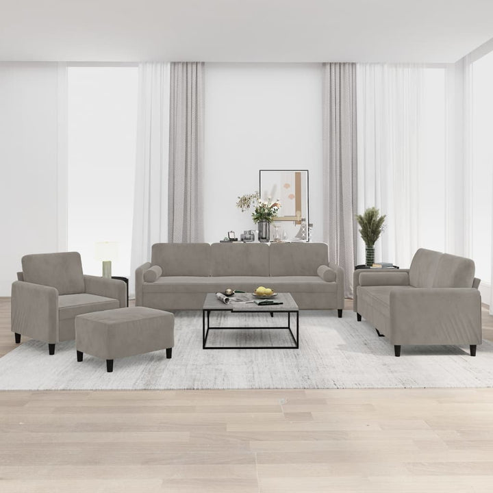 4-tlg. Sofagarnitur mit Kissen Hellgrau Samt