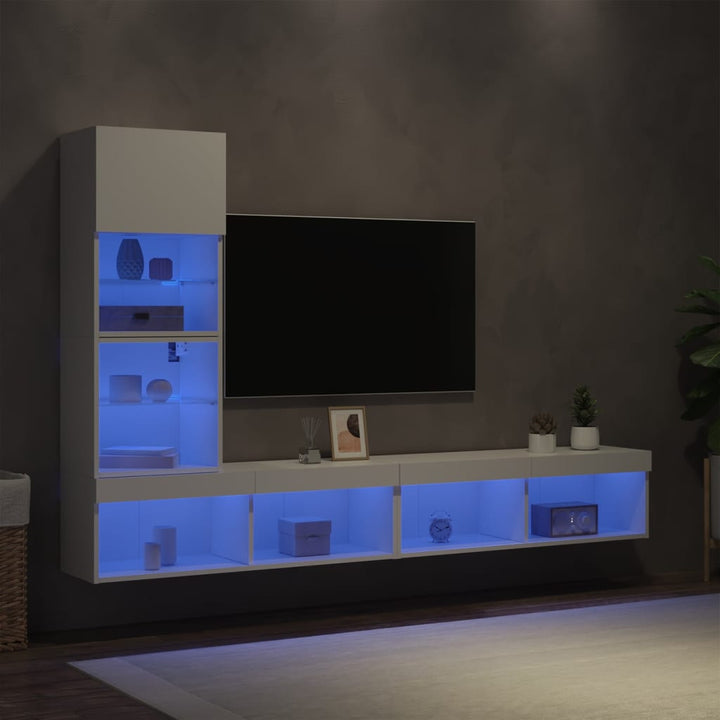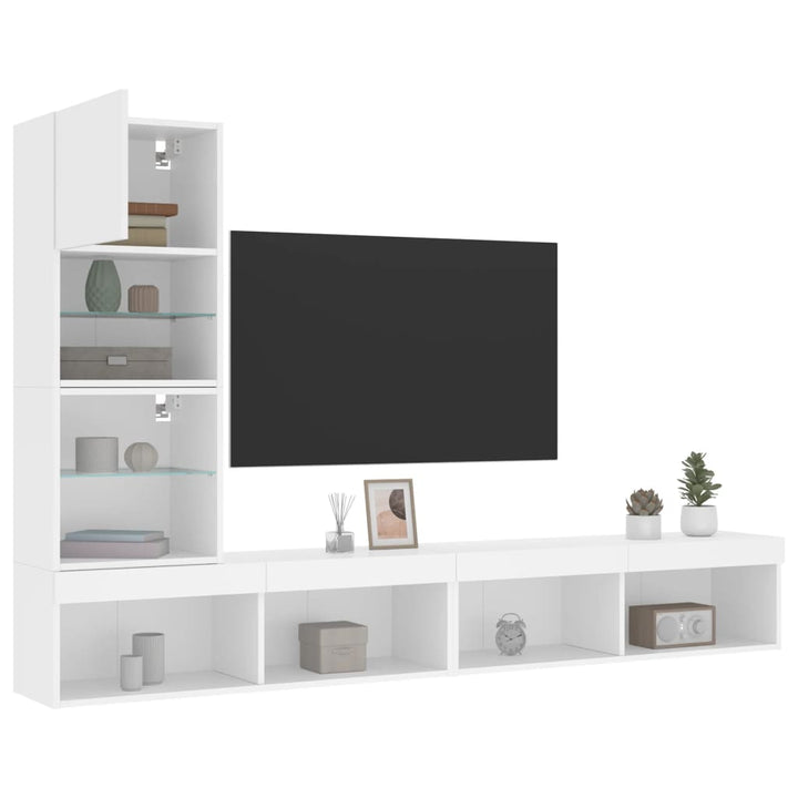 4-tlg. Wohnwand mit LED-Beleuchtung Weiß Holzwerkstoff