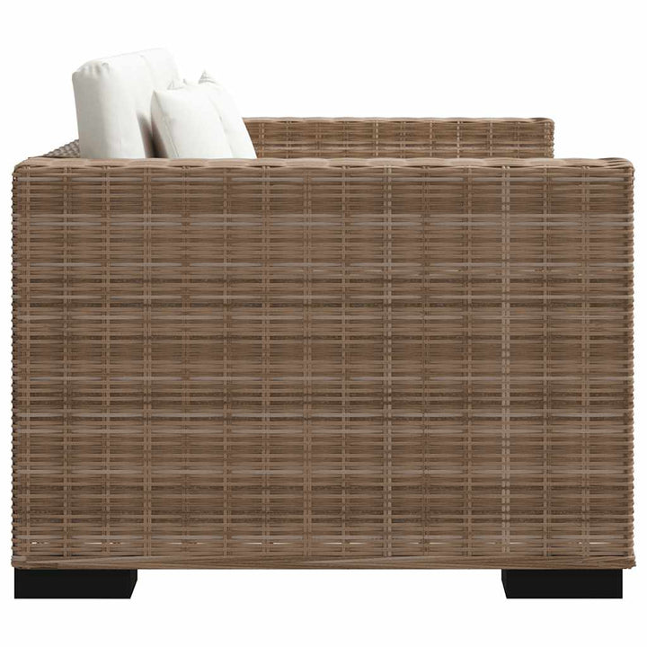 Dieses Rattansofa vereint Stil und Komfort und ist eine tolle Ergänzung für dein Zuhause! Dank des hochwertigen Rattans ist das Sofa leicht zu reinigen, strapazierfähig und für den täglichen Gebrauch bestens geeignet. Es verfügt über einen robusten Holzrahmen, der sehr robust und stabil ist. Die dicken Sitz- und Rückenpolster und Kissen sind dank ihrer abnehmbaren Bezüge waschbar. Darüber hinaus tragen die breiten Armlehnen zum Sitzkomfort bei. Zum Lieferumfang gehören ein 3-Sitzer-Sofa, drei Sitzpolster, zwei Rückenpolster und zwei Kissen.