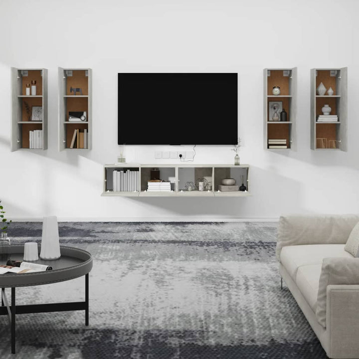 vidaXL 6-tlg. TV-Schrank-Set Betongrau Holzwerkstoff