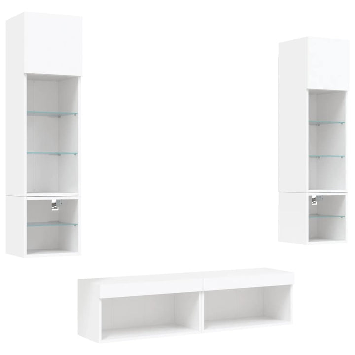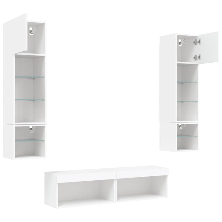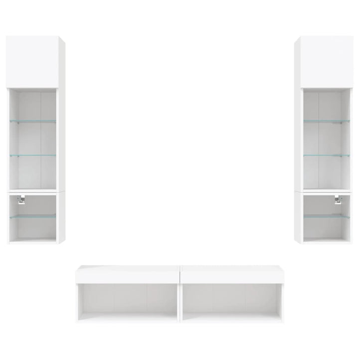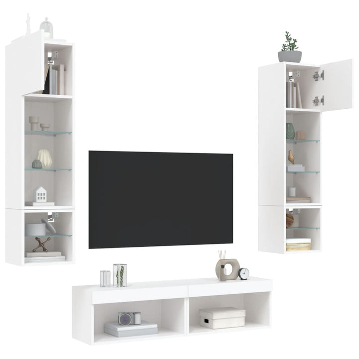 vidaXL 6-tlg. Wohnwand mit LED-Beleuchtung Weiß Holzwerkstoff