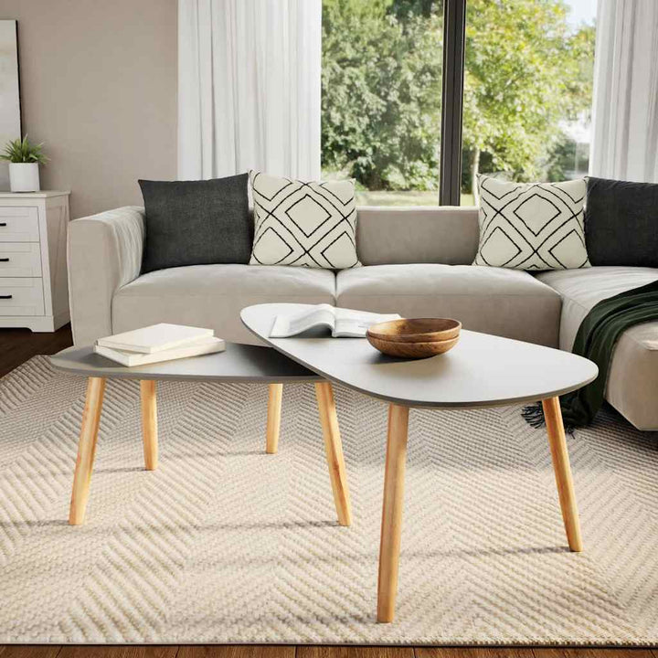 vidaXL Couchtische 2 Stk. Grau Kiefer Massivholz