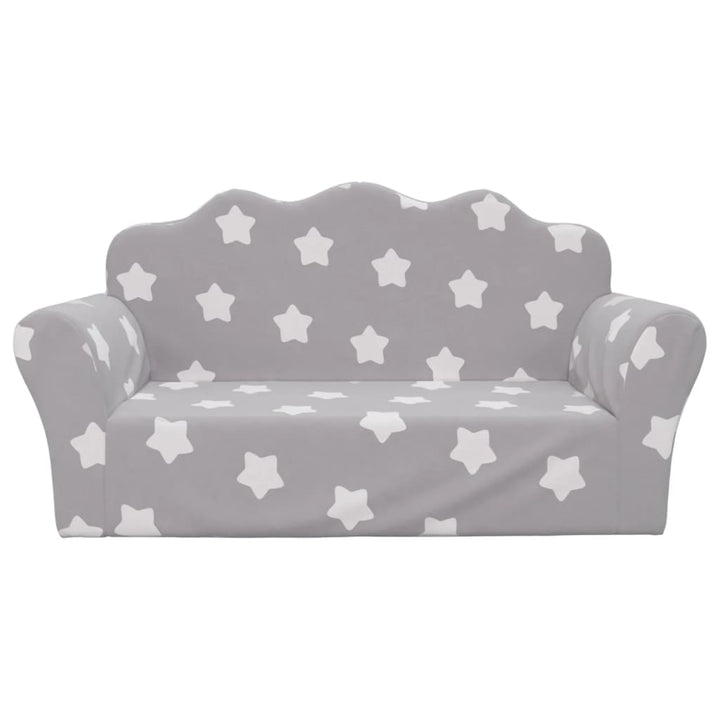 vidaXL Kindersofa 2-Sitzer Hellgrau mit Sternen Weich Plüsch