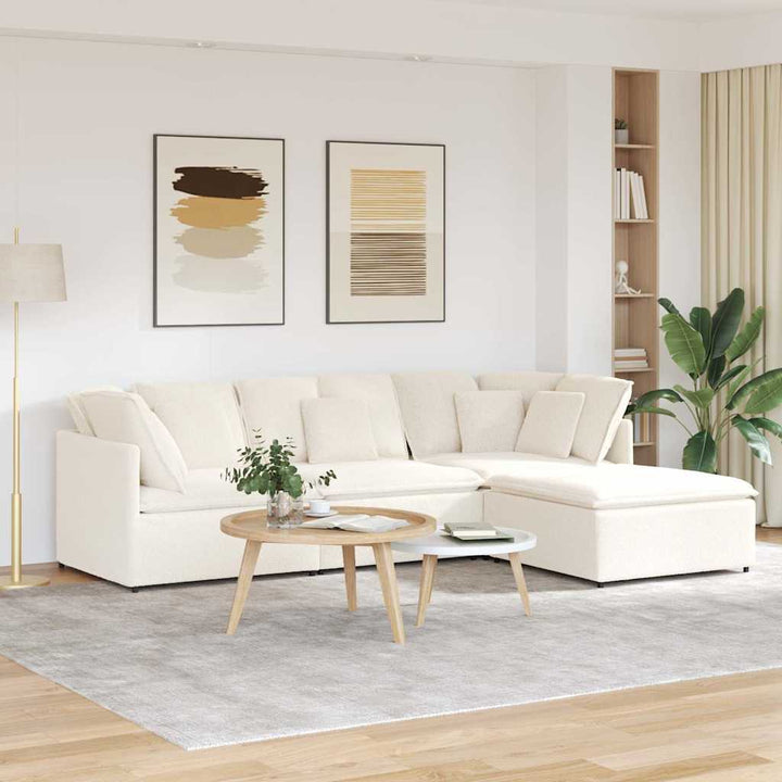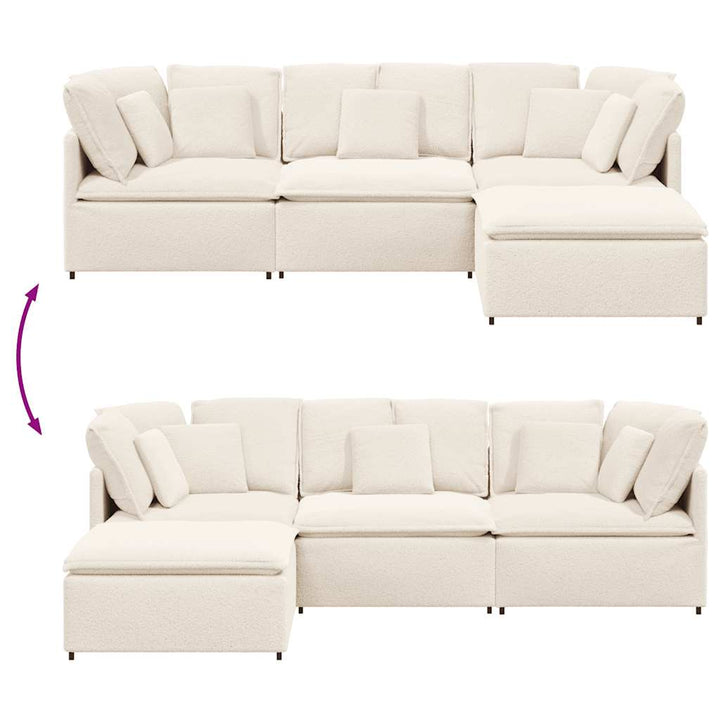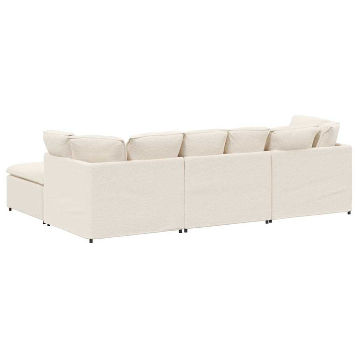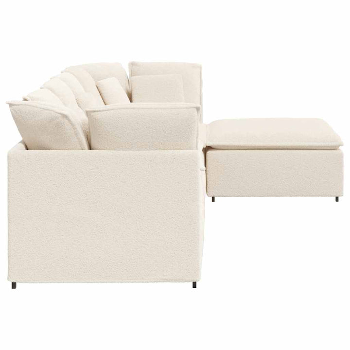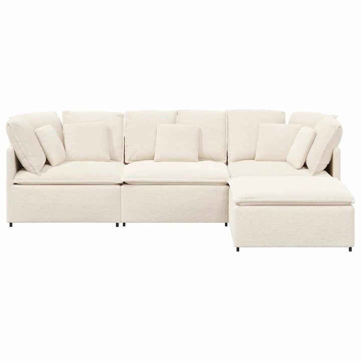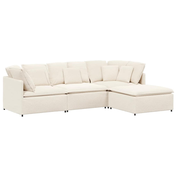 vidaXL Modulares Sofa mit Hocker Kissen Stoff in Lammwolloptik Creme