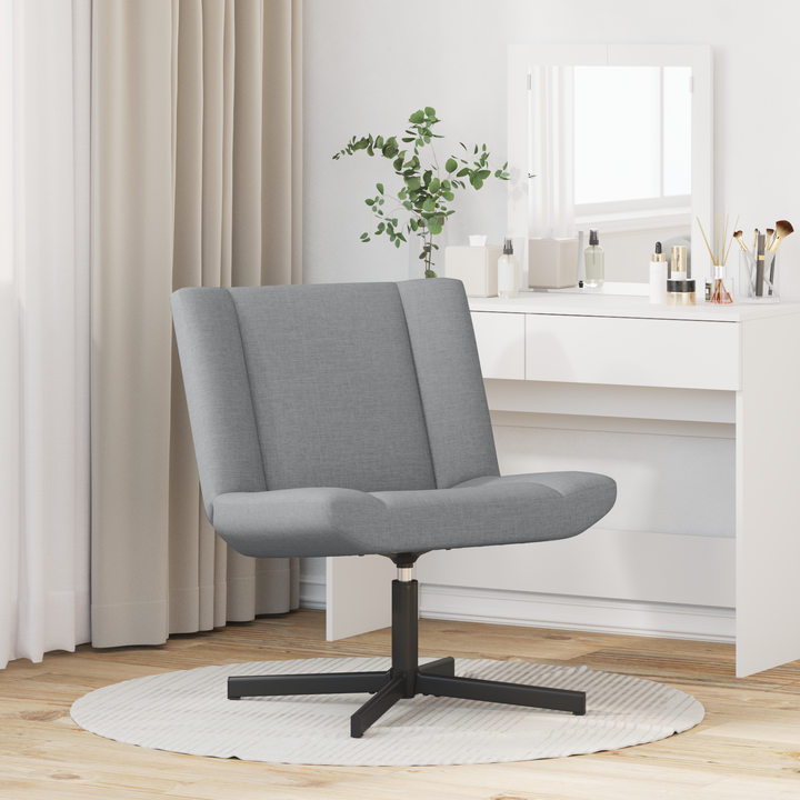 Dieser vidaXL Moderne Schwenkstuhl kombiniert modernen Stil mit praktischem Design und ist ideal für viele Orte. Mit seiner eleganten hellgrauen Polsterung und dem mattschwarzen Rahmen ist dieser Stuhl sowohl bequem als auch schick und bringt frischen Wind in dein Wohnzimmer oder Büro. Stylische Ästhetik: Die hellgraue Farbe in Kombination mit dem mattschwarzen Rahmen bringt einen modernen und eleganten Look, der in jedes zeitgenössische Ambiente passt. Klare Linien und eine glatte Textur machen ihn zu einem echten Hingucker. Bequeme Sitzgelegenheit: Das getuftete Kissen garantiert ein gemütliches Sitzerlebnis, ideal zum Entspannen oder um eine Pause während des Arbeitstags einzulegen. Praktische Schwenkfunktion: Mit dem Schwenkmechanismus kannst du dich problemlos drehen und mit deiner Umgebung in Kontakt treten, ohne aufzustehen. Robust und zuverlässig: Aus strapazierfähigem Stoff und solidem Stahl gefertigt, hält dieser Stuhl bis zu 120 kg aus und sorgt für Stabilität und Sicherheit im regelmäßigen Gebrauch. Vielseitige Nutzung: Du kannst diesen Stuhl überall drinnen verwenden. Die stylische Option für dein Wohnzimmer, dein Home Office oder als zusätzliche Sitzgelegenheit für Gäste.